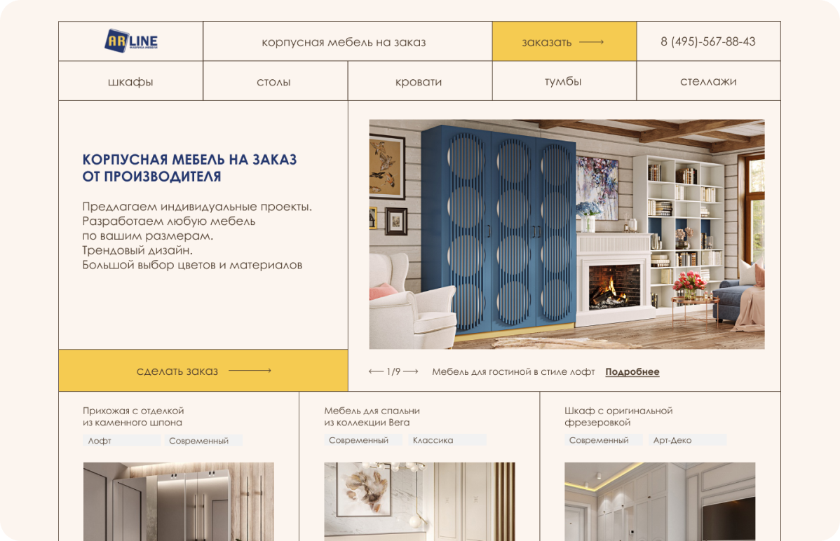 Я готовлю три дизайн-концепта главной страницы сайта. Вы выбираете один, и он ложится в основу дизайна всего проекта. На основе утвержденного концепта я рисую дизайн всех страниц сайта.