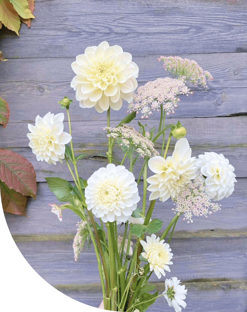 Наш ассортимент тяготеет к стойким цветам, к популярным культурам в новом прочтении: белые подсолнухи, взъерошенные тюльпаны с рассеченными лепестками, лаймовые циннии, ароматнейшая молюцелла (пожалуйста, не гуглите - удивитесь при получении одной из июльских охапок!)