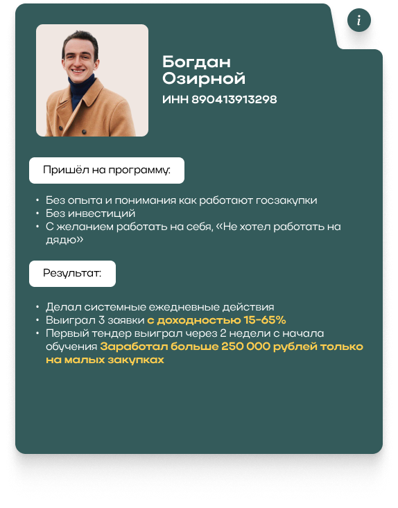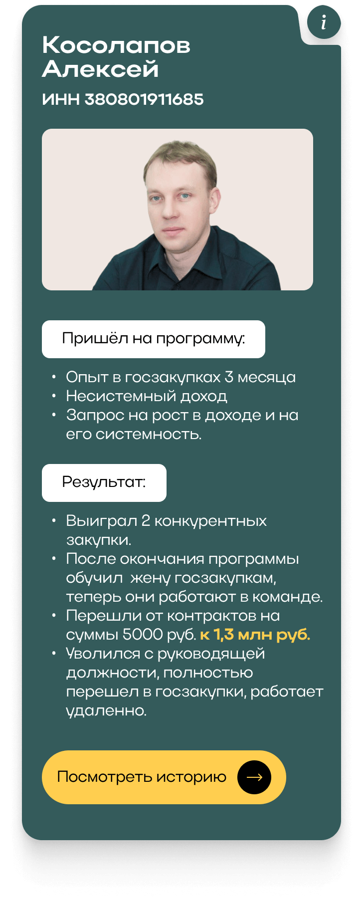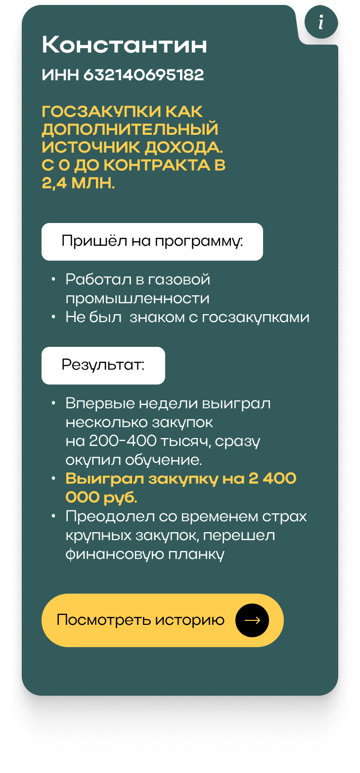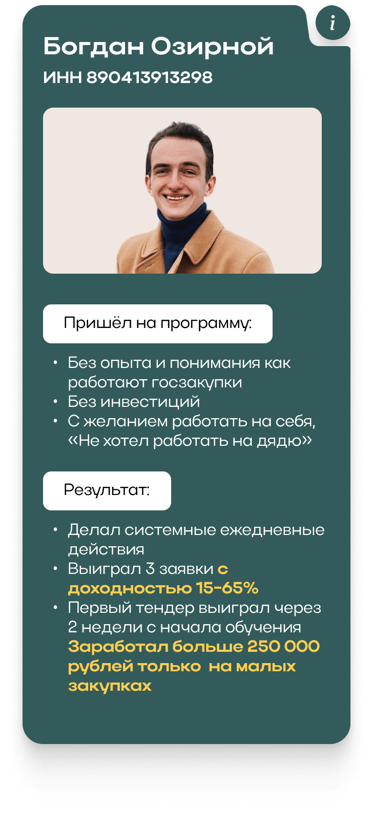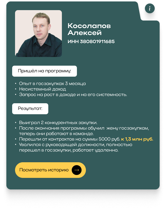 Каждый наш куратор - действующий тендерный специалист, уже прошедший путь, который сейчас проходите вы.