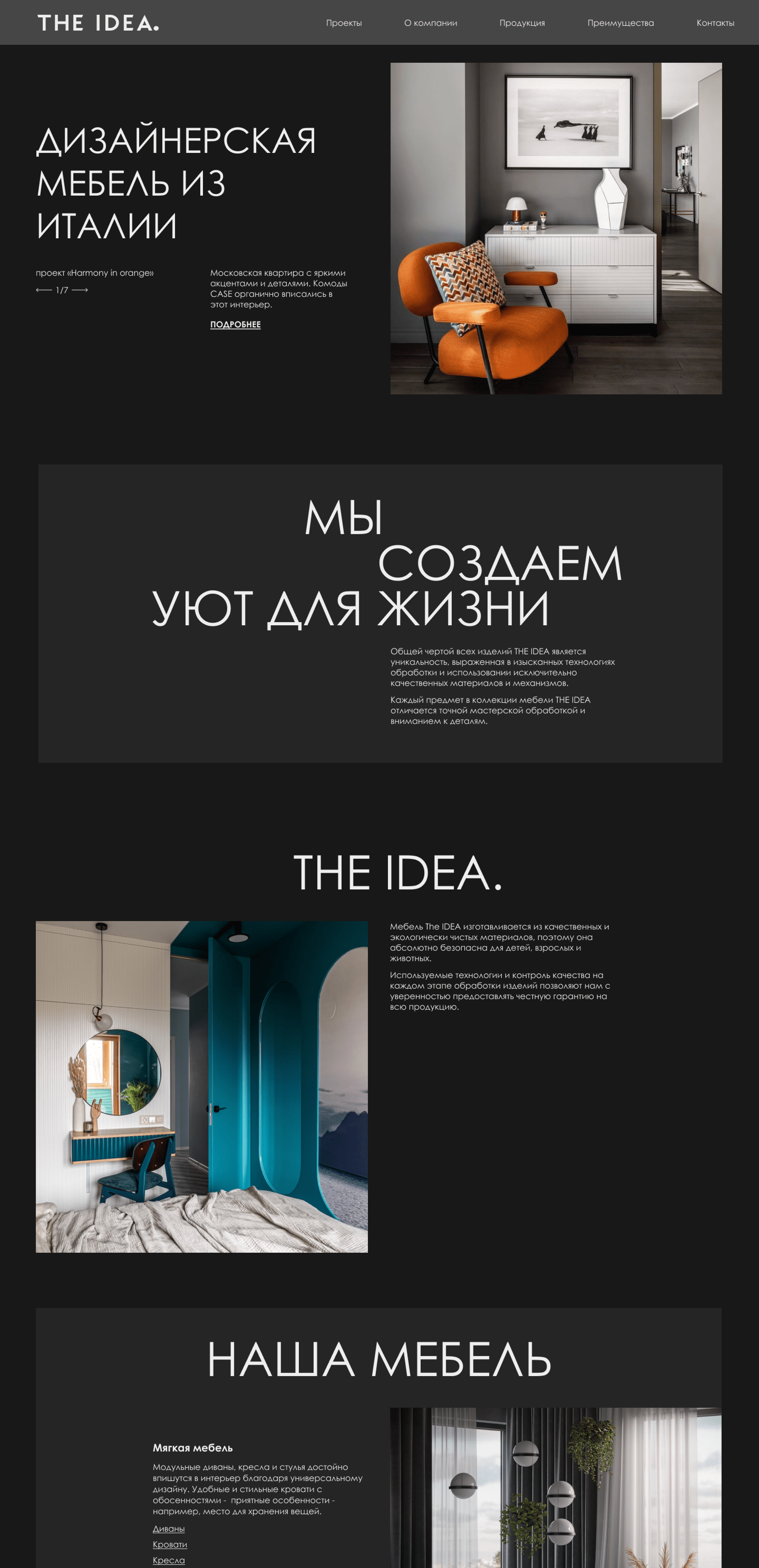 разработать корпоративный одностраничный сайт бутиковой мебельной фабрики
