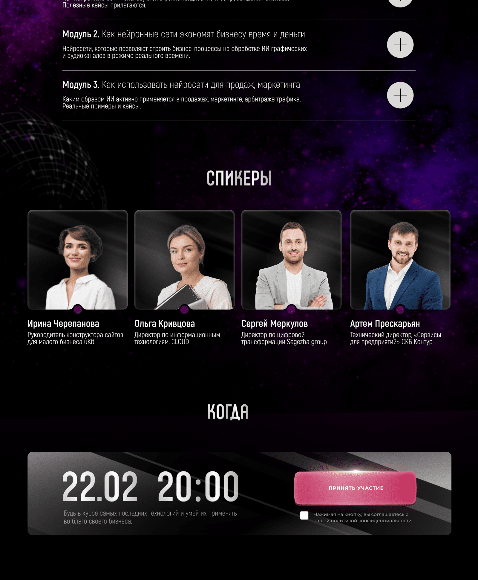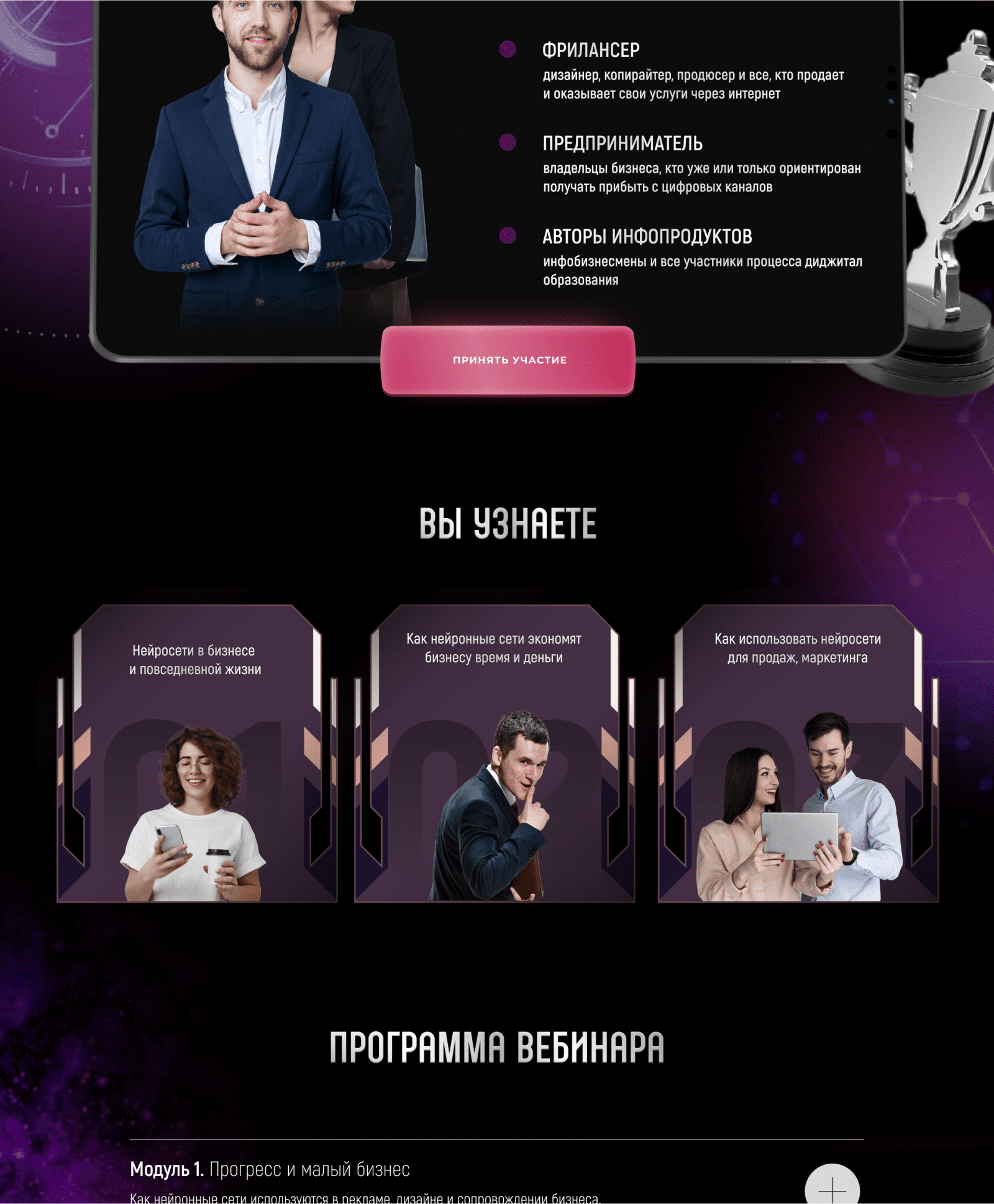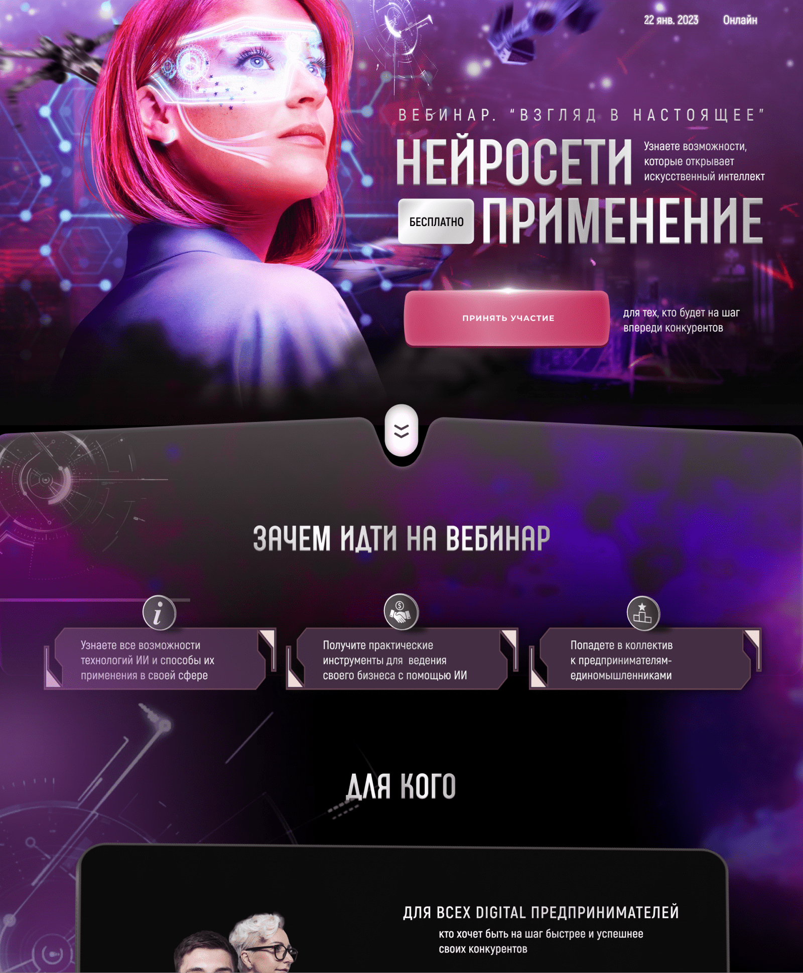 разработать лендинг для вебинара с целью максимизировать регистрации на вебинар