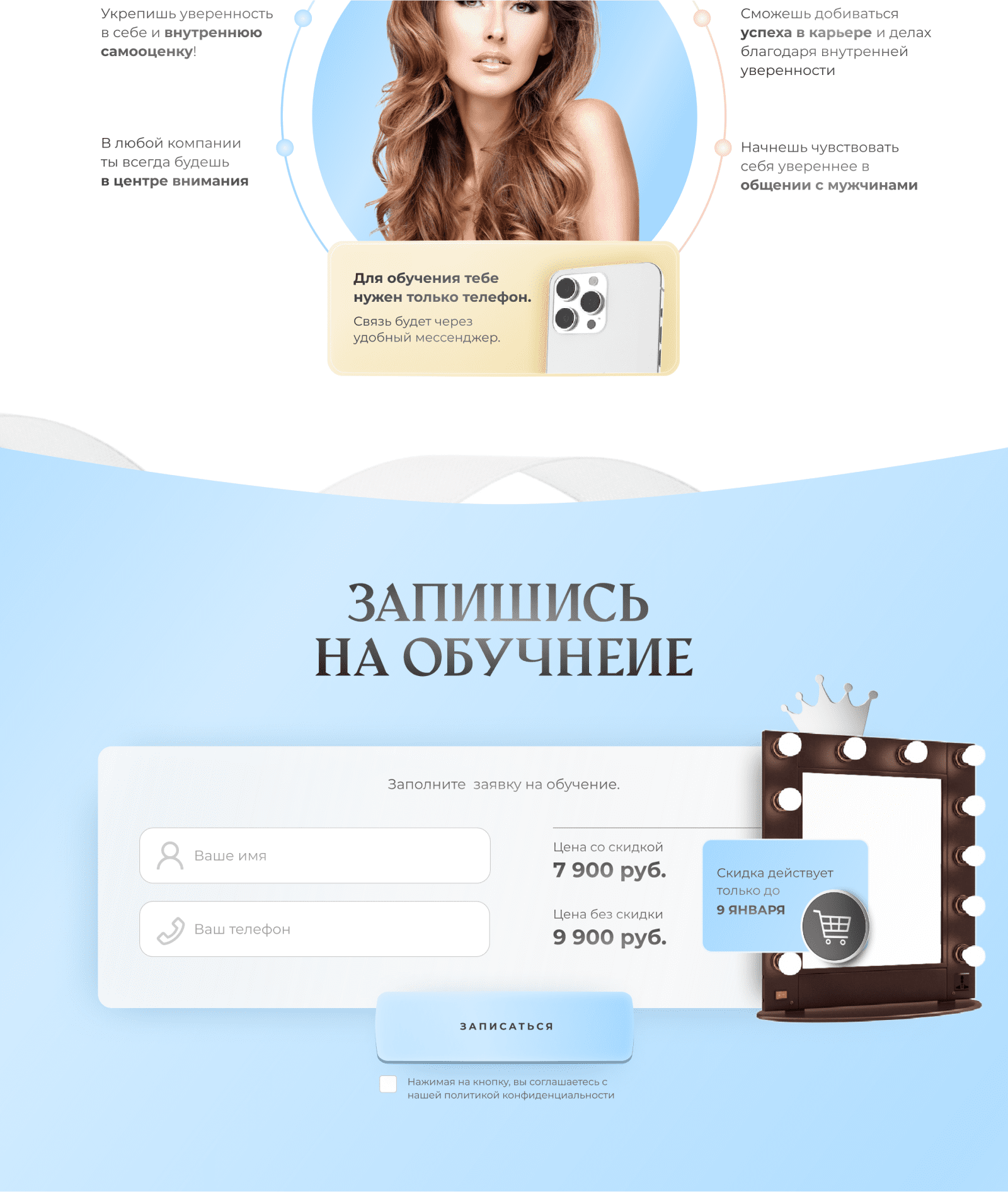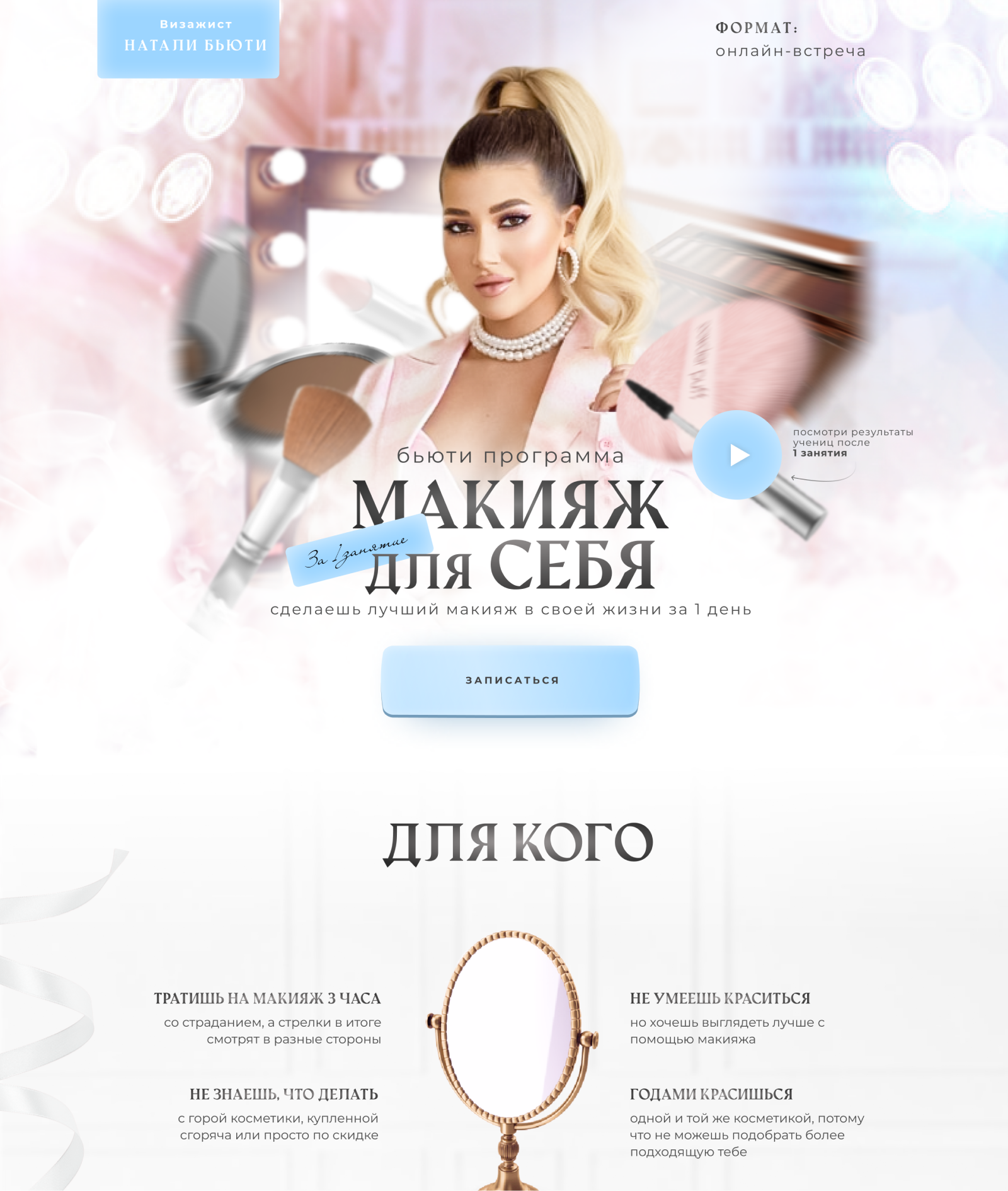 разработать лендинг для продаж онлайн-консультаций визажиста