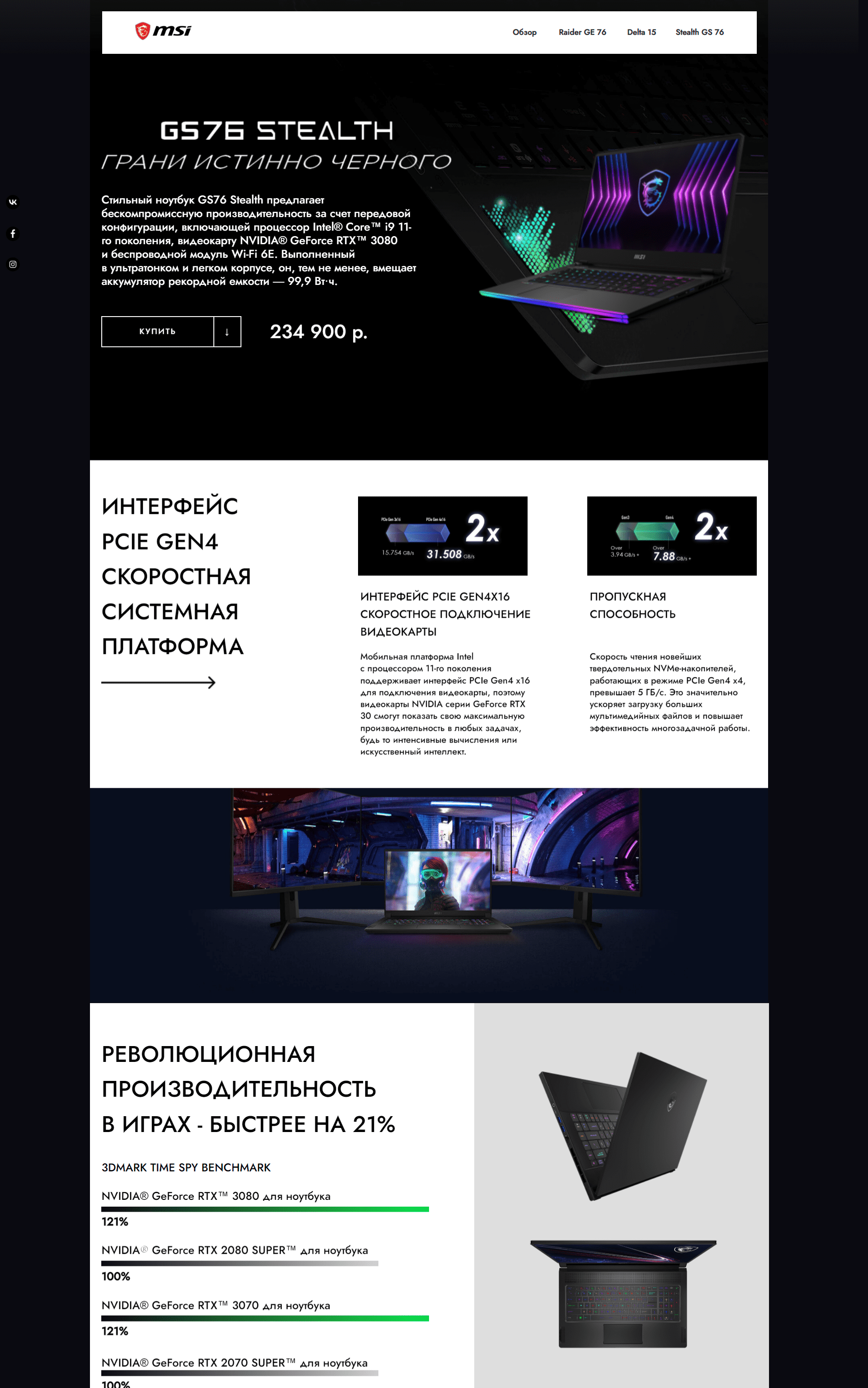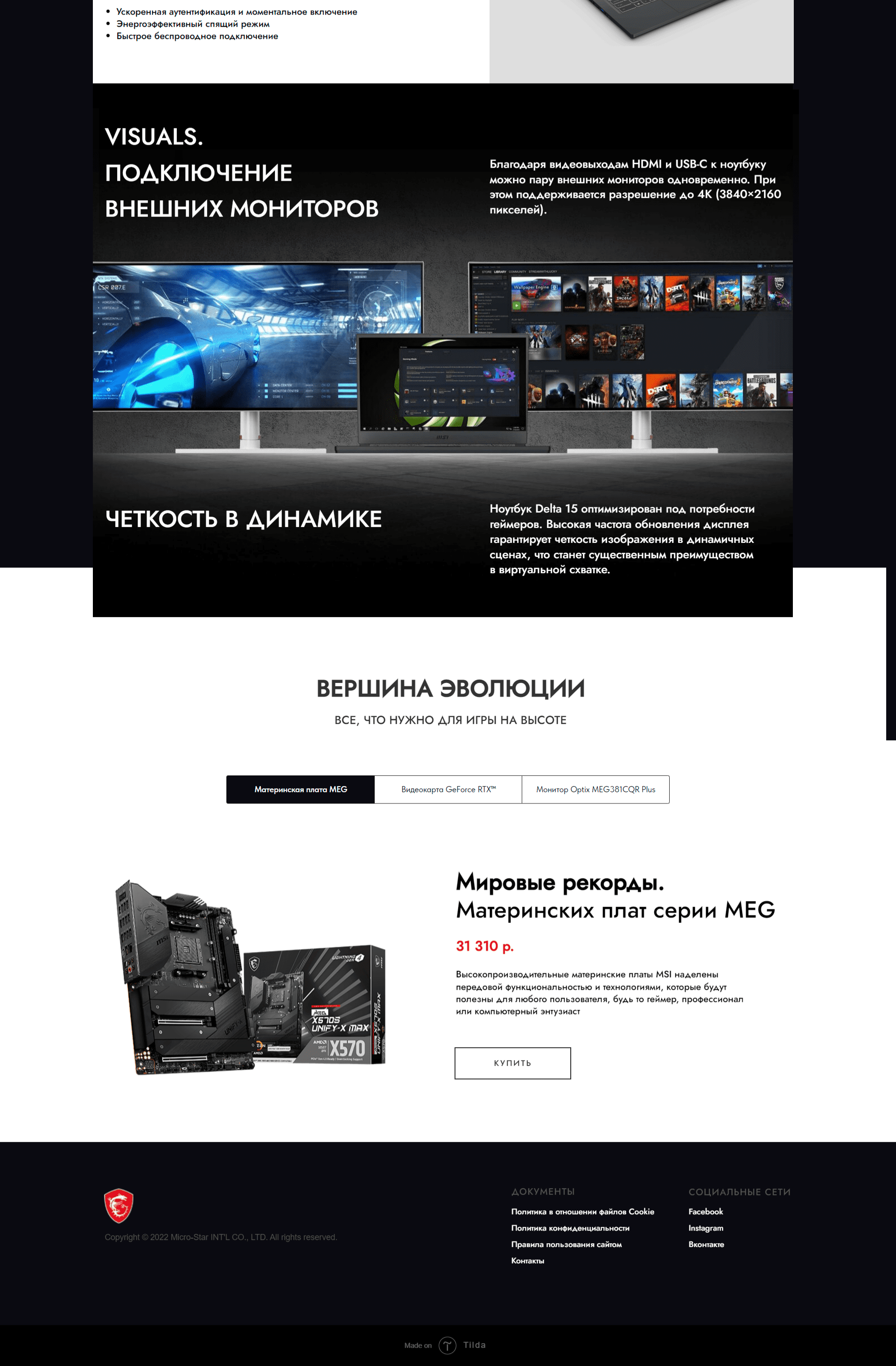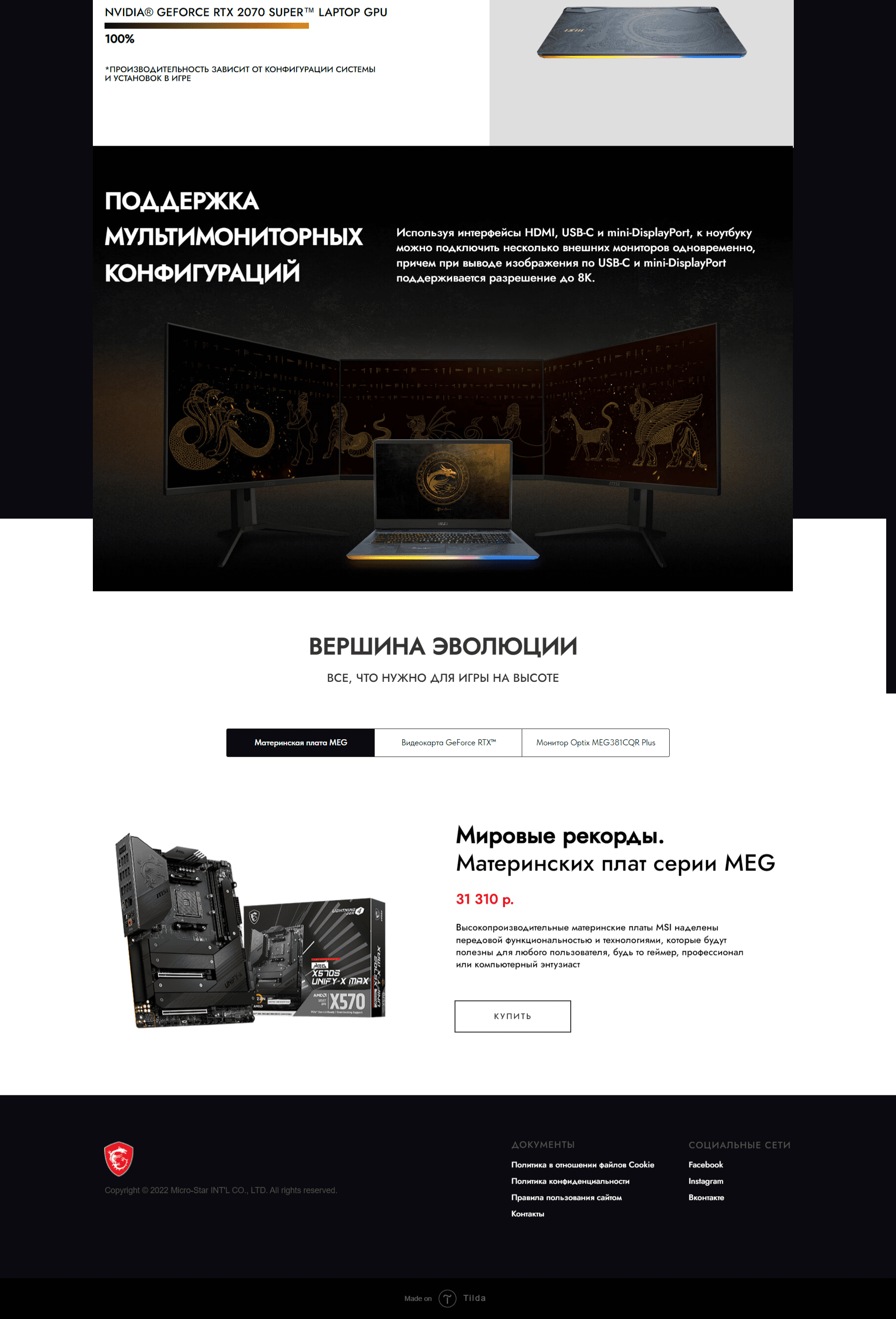 Промо-сайт игровых ноутбуков MSI.