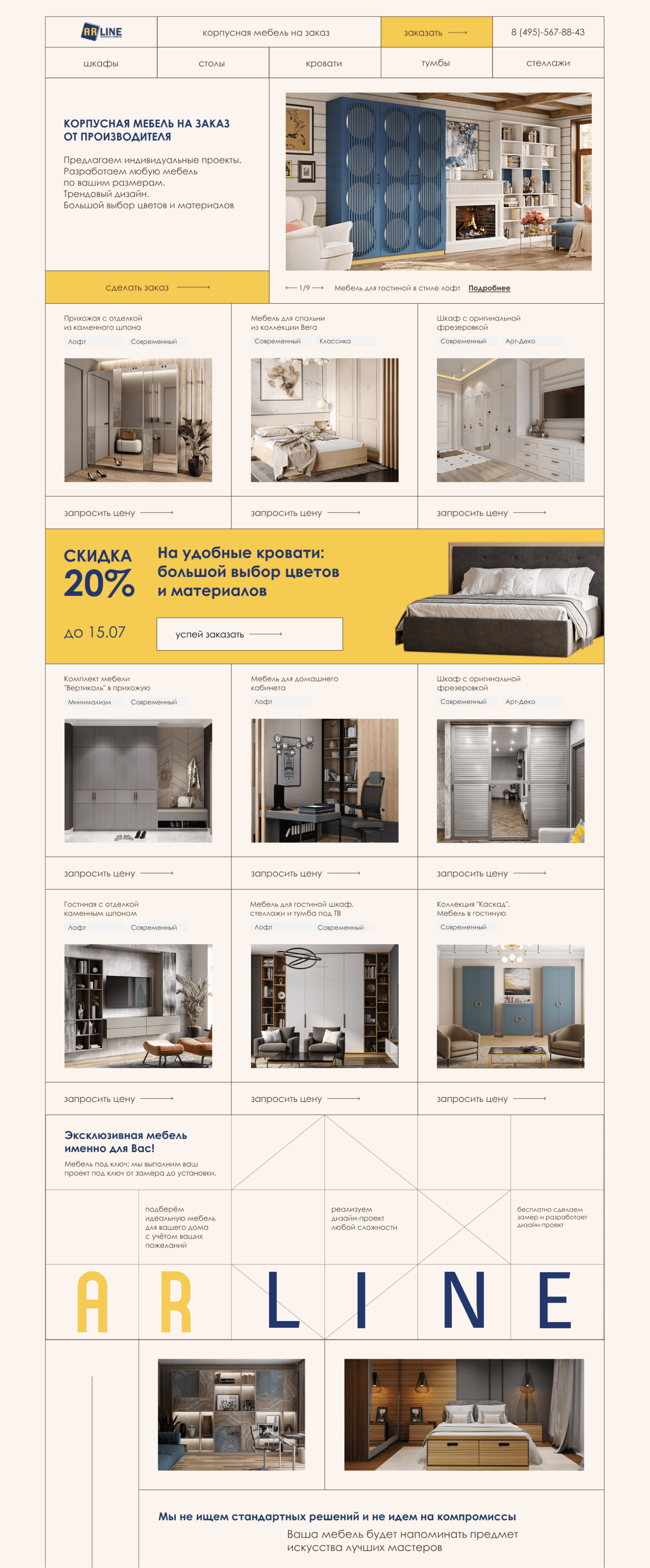 разработать отдельный лэндингдля услуги производства мебели по индивидуальным заказам
