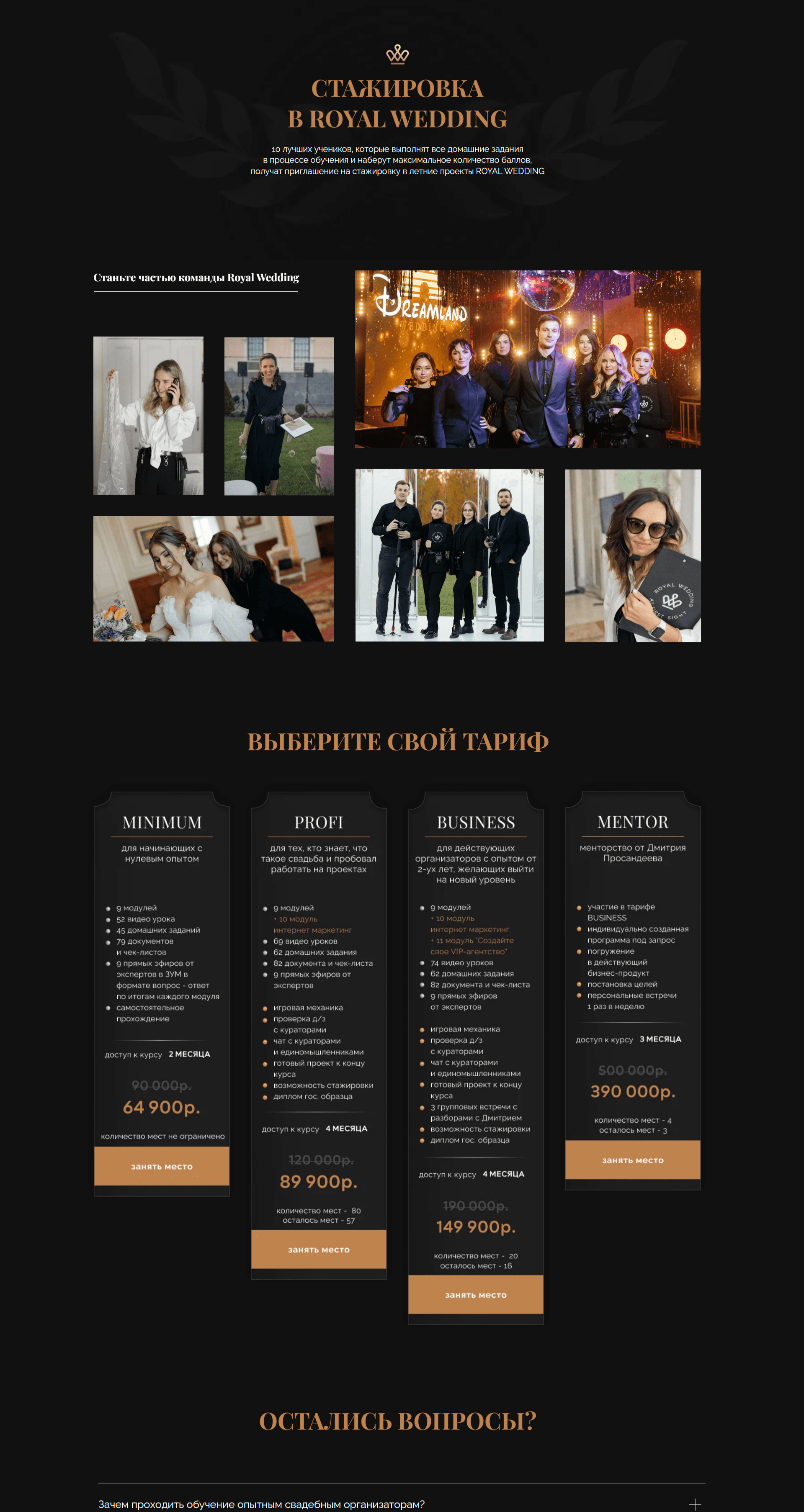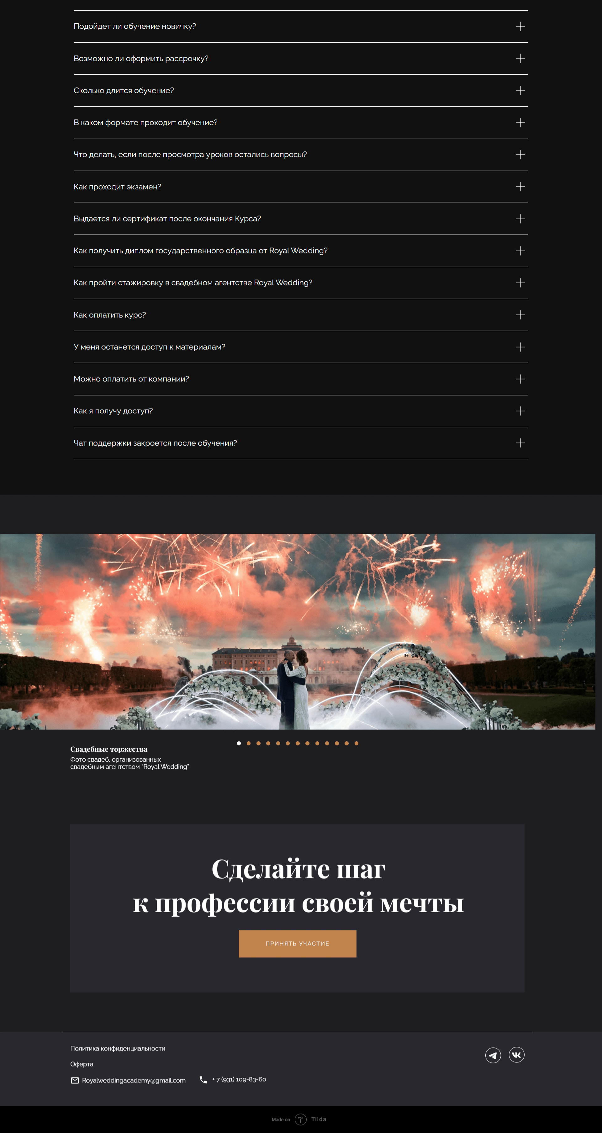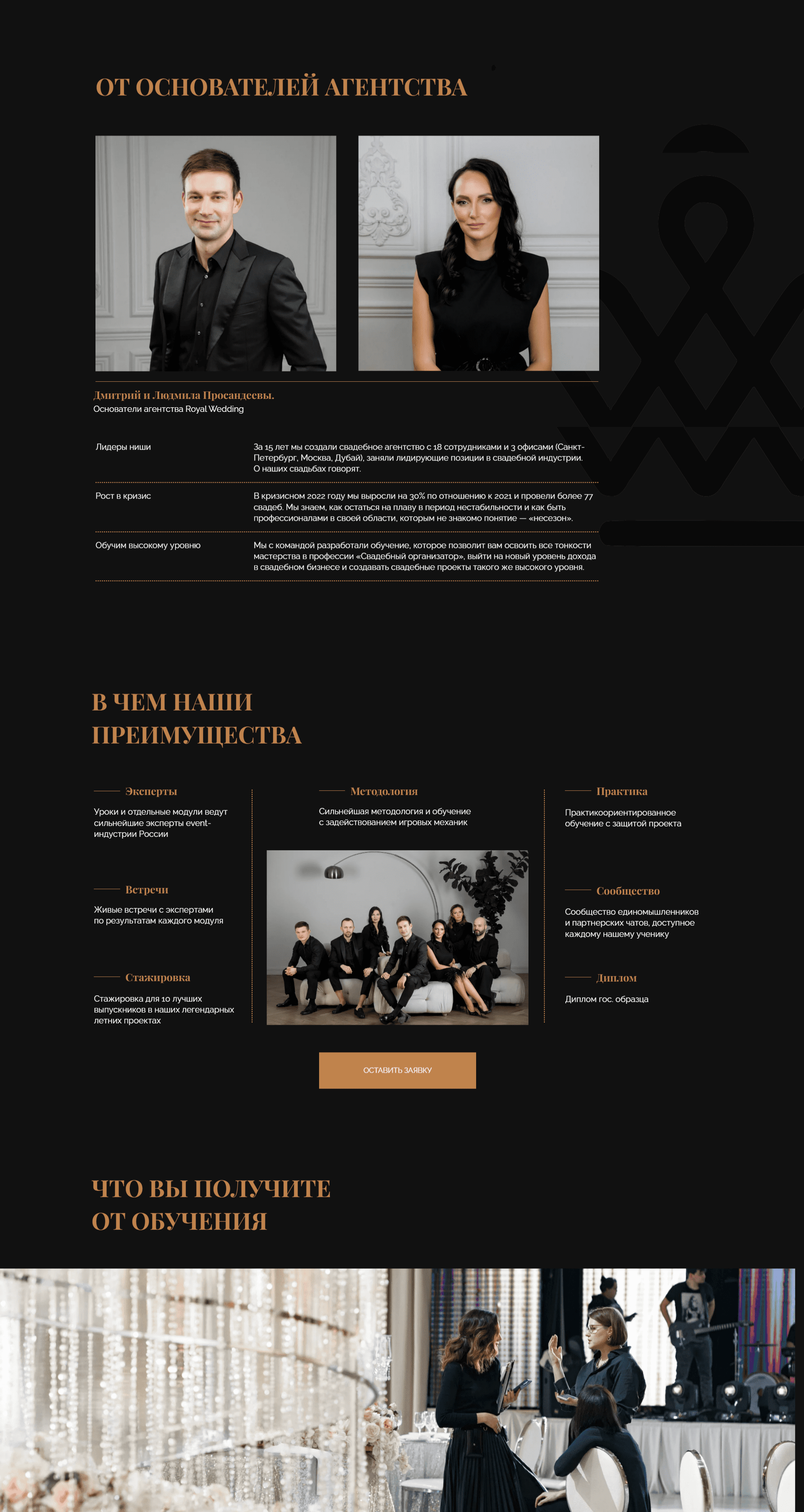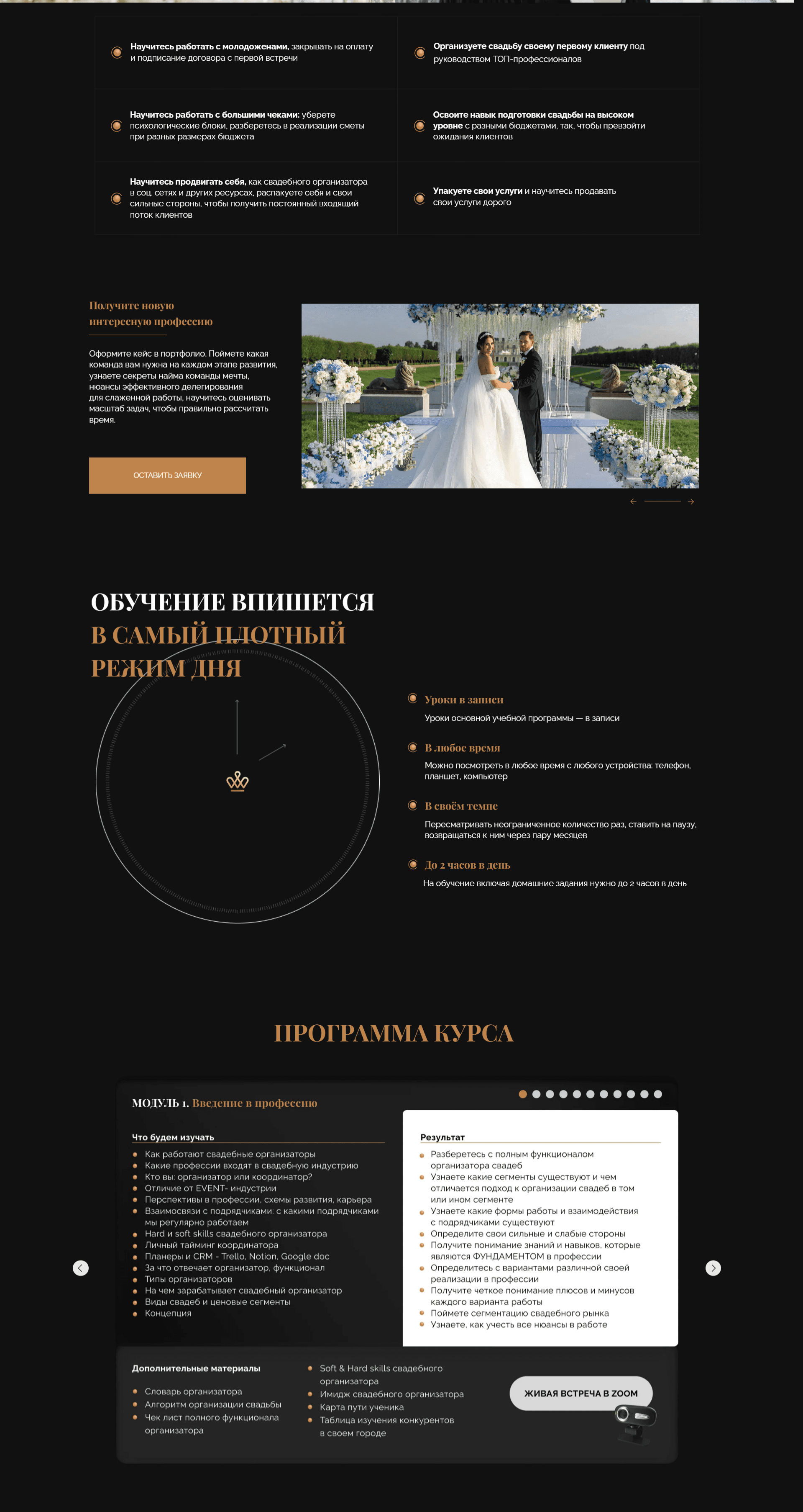 запуск продажи онлайн-курса по обучению профессии "Свадебный организатор" от лидеров индустрии свадебных торжеств Royal Wedding Academy